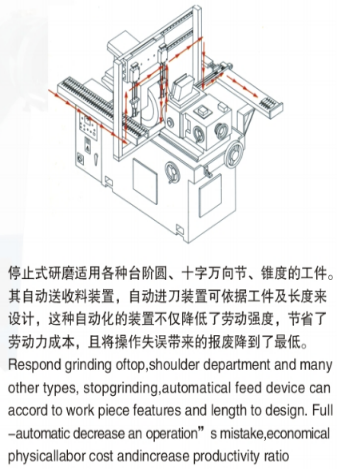 | 5、修整裝置:采用鑄鐵FC-30 ,經(jīng)熱處理,精密研磨及鏟花加工而成;特殊設(shè)計(jì)的油壓修整系統(tǒng),配合無段變速,確保修整平穩(wěn),真直;通過研磨時(shí),可按工件及需要,導(dǎo)輪修整座可做±5°旋轉(zhuǎn),使工件與導(dǎo)輪接觸之更好,研磨工件之真直度及表面粗糙度相對(duì)提高,且效率之更高。 |